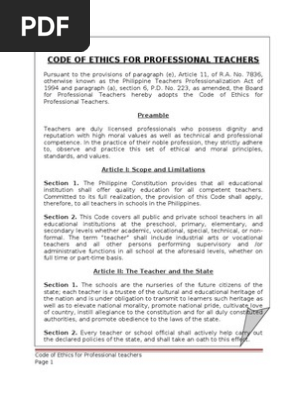 Code of ethics for professional teachers pdf download